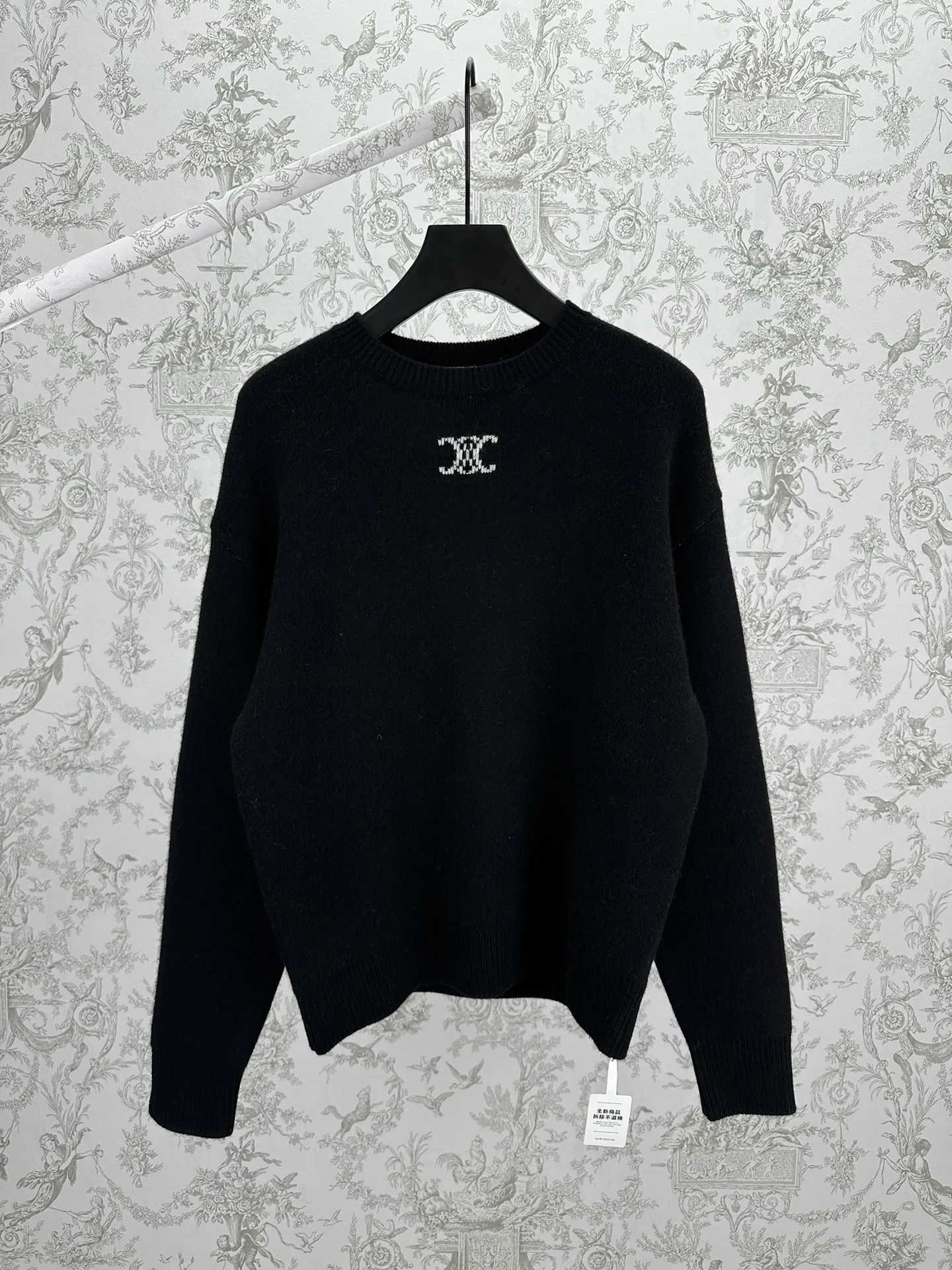 CELINE 25ss新款圆领毛衣TRIOMPHE提花经典版型圆领罗纹饰边